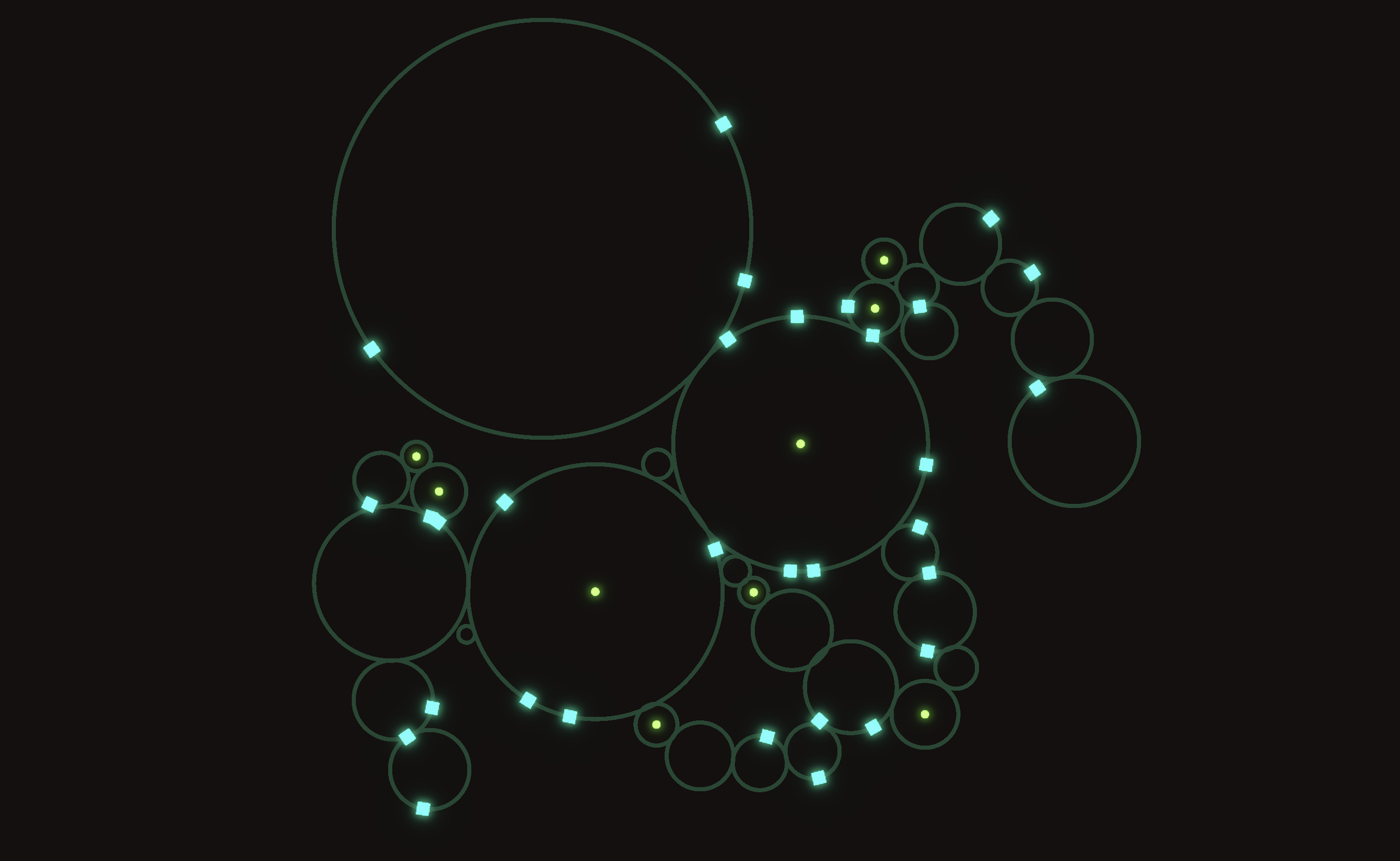 Make constellations, machines, cities spring to life. Watch residents flow around your system as it grows.